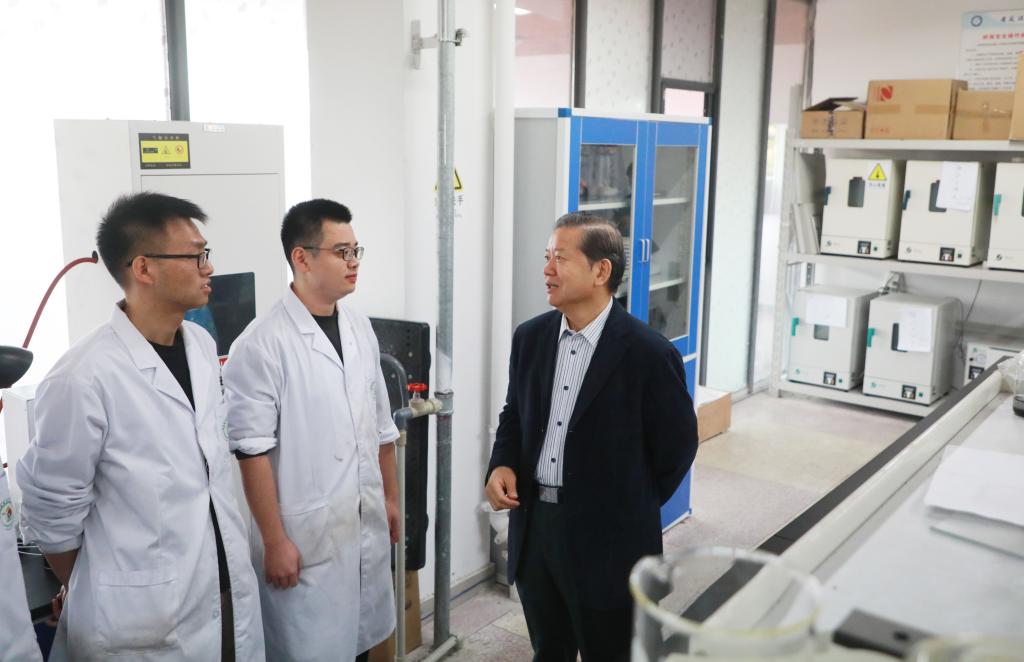 袁亮一行首先参观了学院特色文化长廊,校友文化墙既定格了历届毕业生的青葱岁月,也饱含着学院对毕业生们的深切祝福和美好愿望,凝聚并延续着材料学院的历史。随后,袁亮详细了解无机非金属材料工程专业迎接工程教育认证专家的线上线下准备情况,实地查看了微细矿物聚团分选实验室,砂浆混凝土实验室,水泥混凝土力学测试室、新型功能材料大学生创客实验室、清洁能源转化与高效利用实验室、矿山固废资源化利用实验室等,并与正在做实验的研究生进行了亲切交流;袁亮指出,专业认证是学校本科教学质量保障与提升的重要抓手,是专业内涵建设的主要组成部分,学院领导班子要学深弄懂工程教育专业认证标准,充分展示我校本科教学和人才培养的能力和水平,工作落细落实,做好专业认证各项准备,全体师生以最佳的状态迎接认证专家的线上线下考查。
