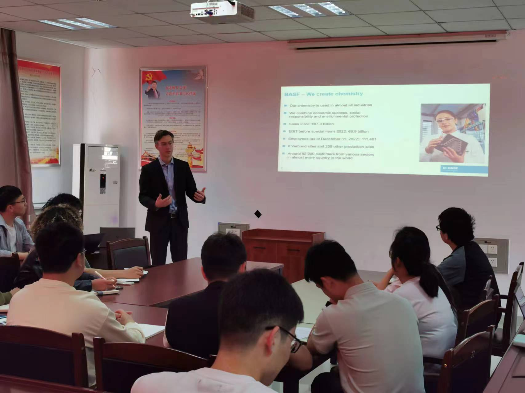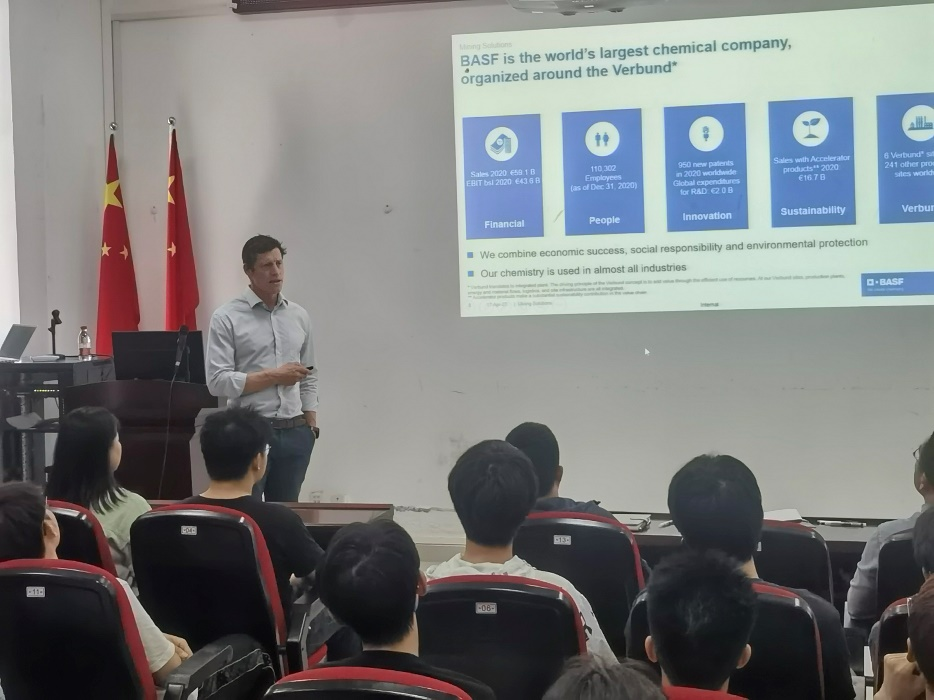 Michael Labenberger代表巴斯夫公司感谢了学校的盛情接待,并介绍了巴斯夫公司(中国)发展情况,随后双方围绕产学研合作、人才培养等方面与学校进行了深入交流,希望进一步深化合作。